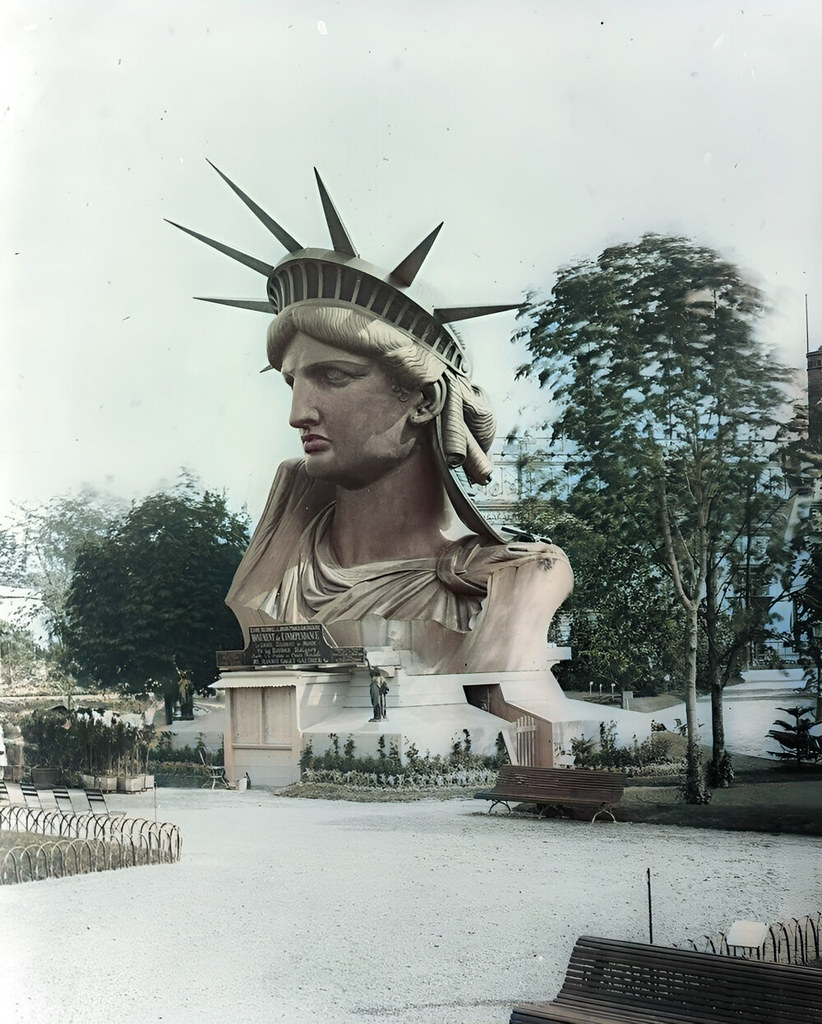 At the Exposition of 1878, the gardens of the Trocadéro displayed the full-size head of the Statue of Liberty, before the statue was completed and shipped to New York.