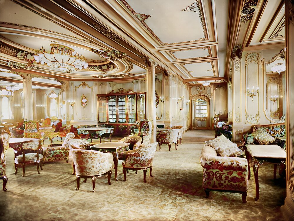 The interior of Titanic was modeled after the Ritz Hotel, with first-class cabins finished in the Empire style.