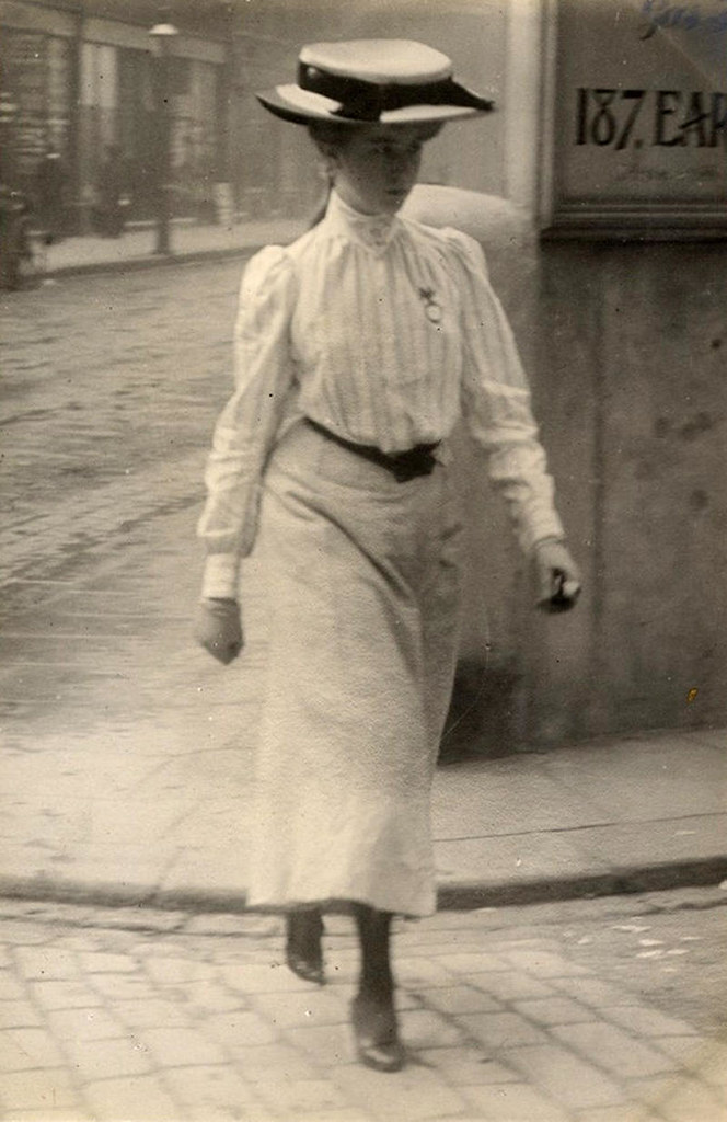 Apart from her hat, the practicality and style of her clothing wouldn't change much for decades to come.